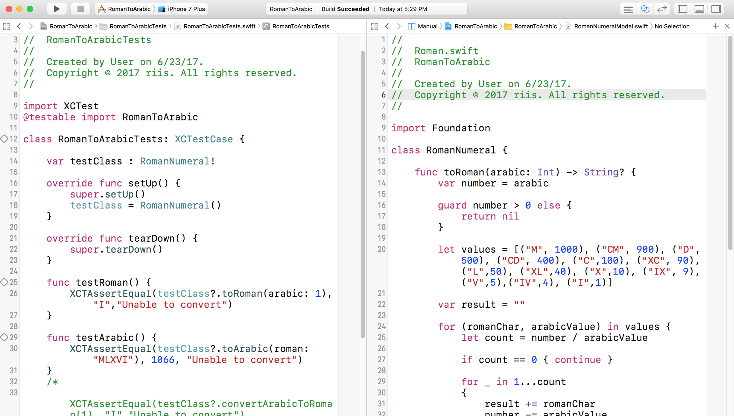 3. Open ArabicToRomanTests - use the two screens in Xcode